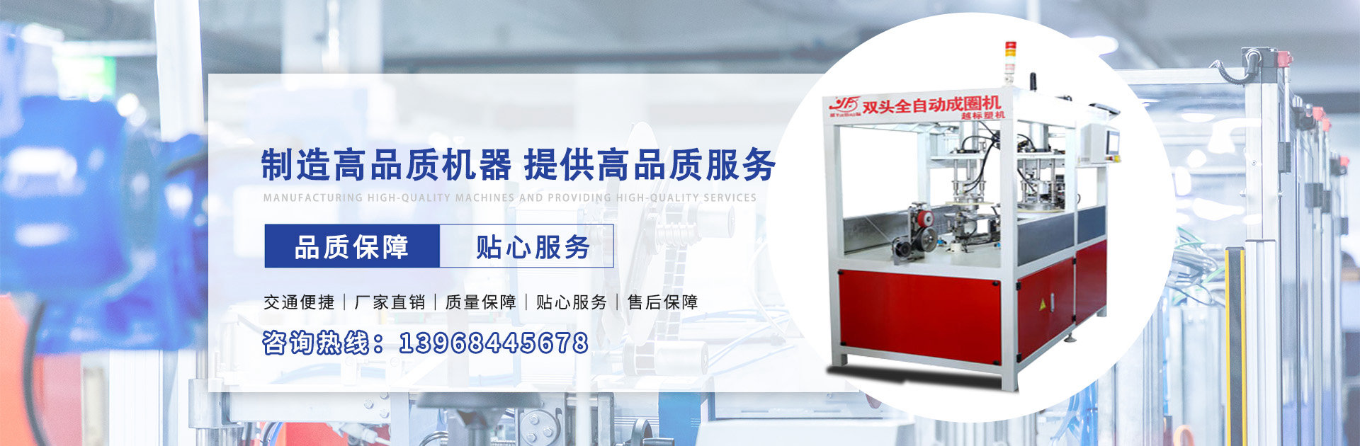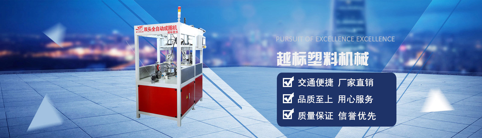 臺州市越標塑料機械有限公司,位于路橋區新橋鎮新良居工業區,交通便捷。本公司以塑料擠出機械發展為導向,20年來以開拓進取,追求卓越的精神目標,專注于塑料擠出機械的開發,設計和制造。主要產品有:全自動電線成圈機,PET/PP刷絲生產線,塑料圓絲單絲生產線,特斯特包復機組,壓膜線設備,熱熔膠條設備,塑料空心管設備等。